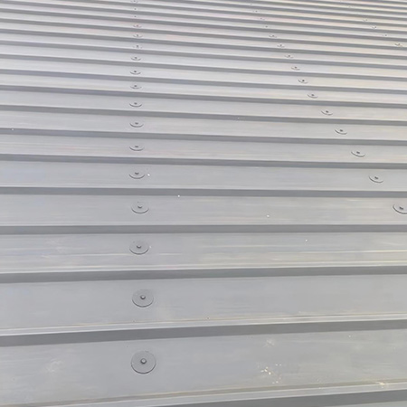 海美防水瓦以鋼板為基板,表面貼覆具有防水防腐功能的TPO/PVC卷材(熱塑性聚烯烴類防水卷材),是海美金屬推出的新一代防水防腐屋面建筑材料。海美防水瓦主要特點就是在各類環境下不易生銹不易漏水,使用熱風焊接進行相連,覆蓋全部裸露的縫隙,在使用過程中可以達到蓄水不滲透的效果,防水效果好,同時還有較好的抗風揭性能和耐老化性能,為鋼結構建筑屋面提供了長久的防護。