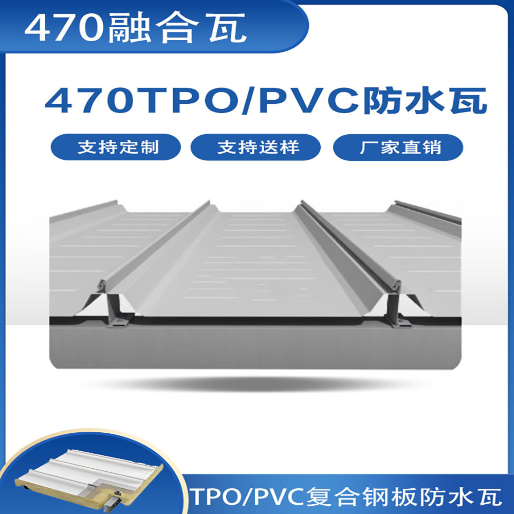 TPO/PVC鋼塑復合防水瓦以鋼板為基板,表面貼覆具有防水防腐功能的TPO/PVC卷材(熱塑性聚烯烴類防水卷材),是一款防水防腐屋面建筑材料。TPO/PVC鋼塑復合防水瓦主要特點就是在各類環境下不易生銹不易漏水,使用熱風焊接進行相連,覆蓋全部裸露的縫隙,在使用過程中可以達到蓄水不滲透的效果,防水效果好,同時還有較好的抗風揭性能和耐老化性